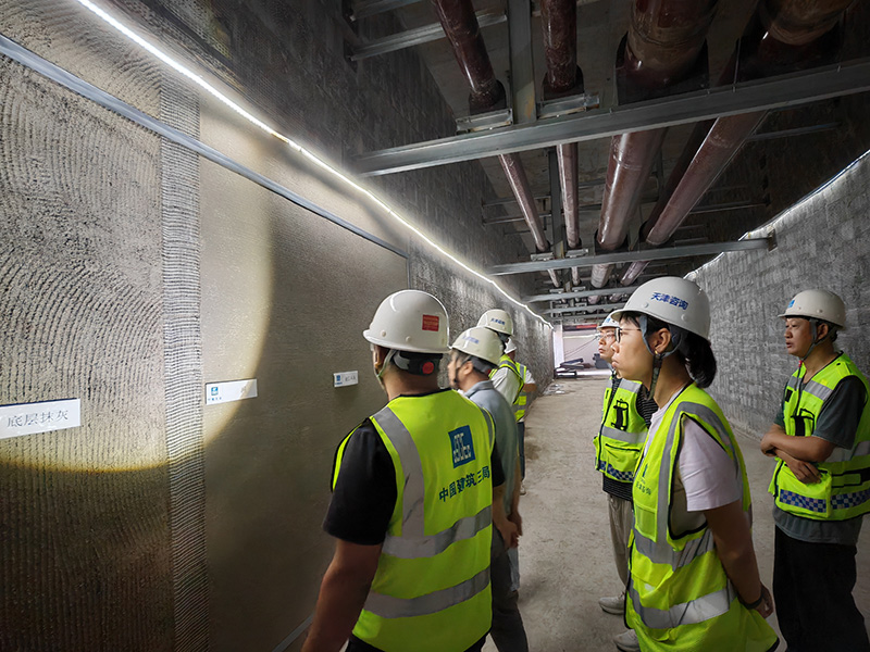 第三事業(yè)部作為天津咨詢監(jiān)理項目建設(shè)的主體,堅持高標(biāo)準(zhǔn)推進安全、質(zhì)量、進度目標(biāo),排好“值班表”,當(dāng)好“監(jiān)督員”。在天津中醫(yī)藥大學(xué)第一附屬醫(yī)院國家醫(yī)學(xué)中心建設(shè)監(jiān)理項目現(xiàn)場,項目總監(jiān)馬輝帶領(lǐng)監(jiān)理人員深入施工現(xiàn)場,聚焦防水、抹灰樣板關(guān)鍵工序,細致核查基層處理、材料合規(guī)性及工藝標(biāo)準(zhǔn),對照規(guī)范逐一排查隱患,用專業(yè)監(jiān)督守住質(zhì)量底線。