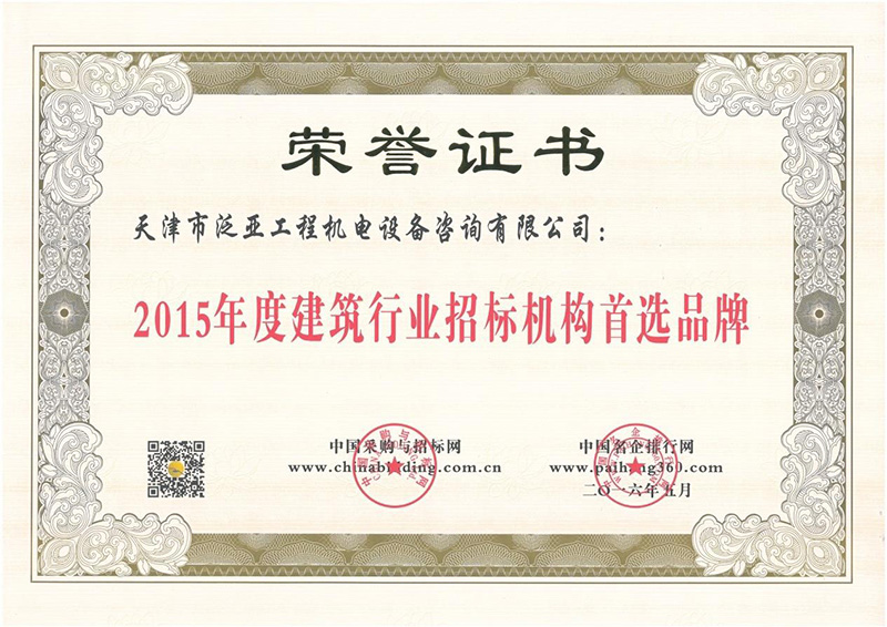2015年度建筑行業招標機構首選品牌