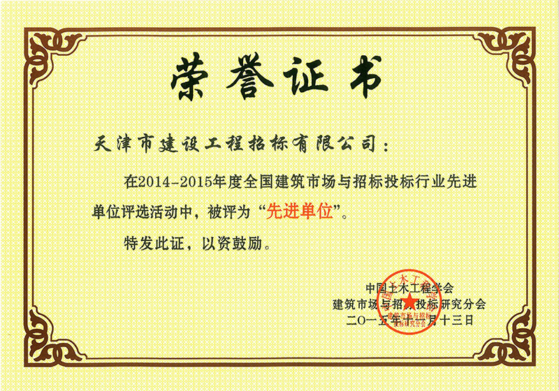 14-15年全國建筑市場與招標投標行業(yè)先進單位