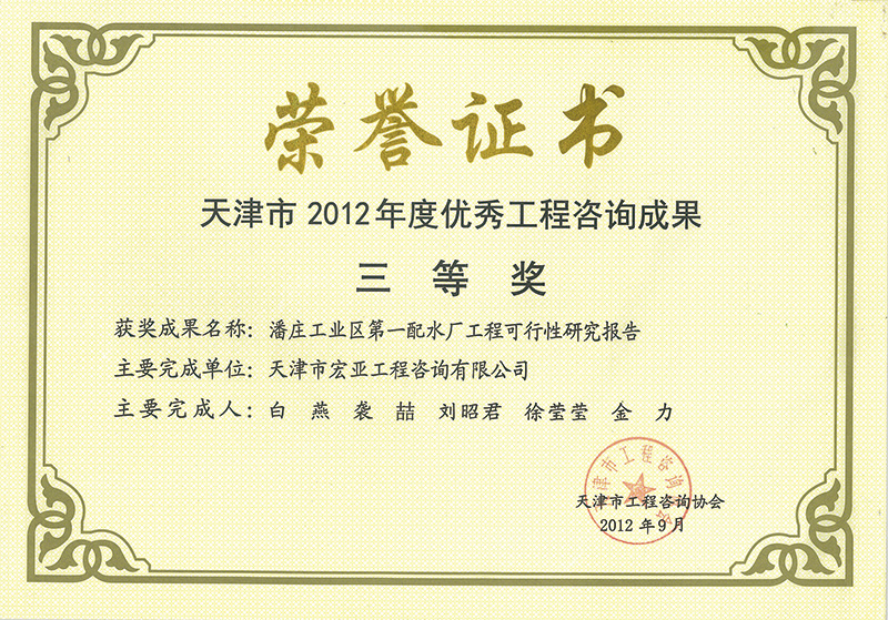 優秀咨詢成果三等獎(2012)