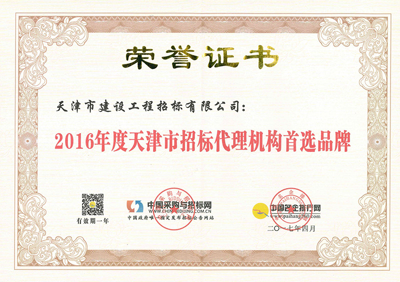 2016年天津市首選機構品牌