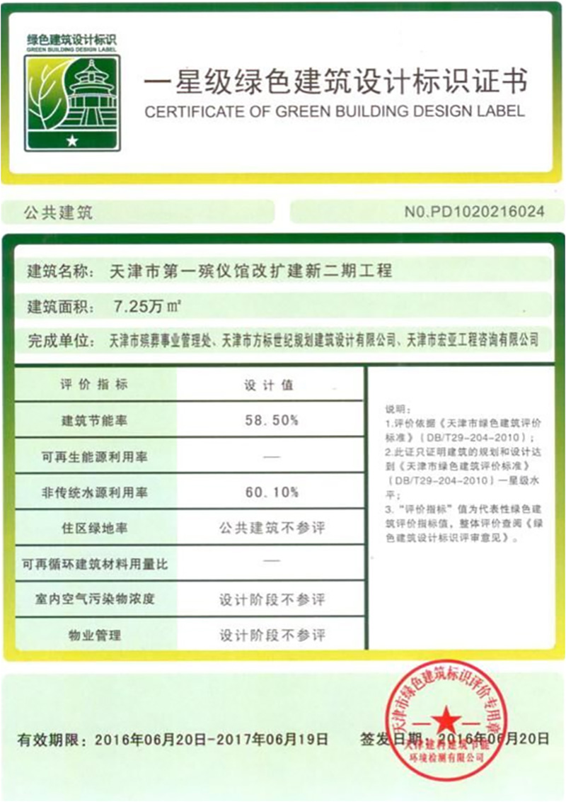 天津市第一殯儀館改擴建項目 更新時間:2021-09-14 點擊:2147 所屬欄目:社會事業 坐落在天津市北辰區鐵東路(第一殯儀館院內)。總投資約3.6億元,總建筑面積7.3萬平米,地上兩層,地下一層,其中:地上5.3萬平米,地下2萬平米,框架結構,屬于天津市民心工程。該項目于2016年6月通過專家會評審,獲得國家一星級綠色建筑設計標識。 服務內容 能評、綠建咨詢、招標代理