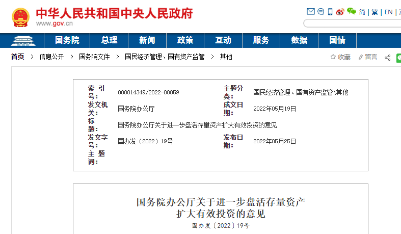 國(guó)務(wù)院辦公廳關(guān)于進(jìn)一步盤活存量資產(chǎn)擴(kuò)大有效投資的意見